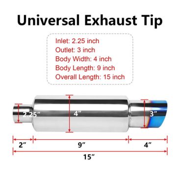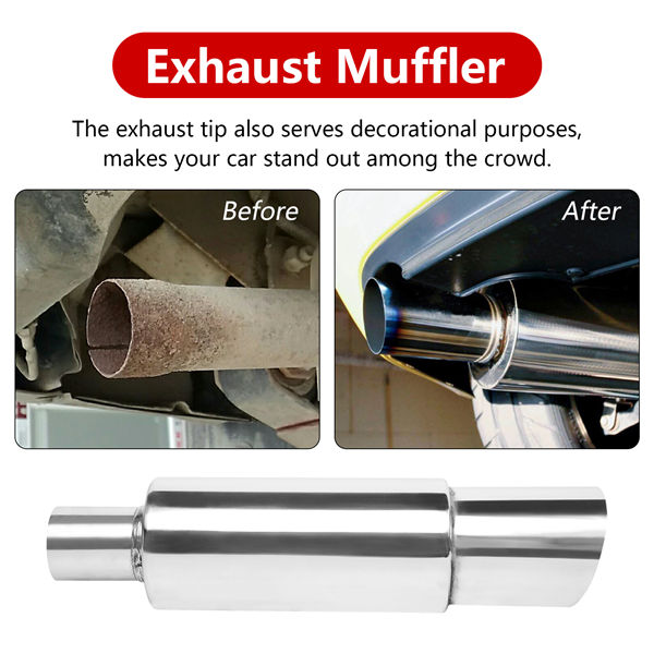 FUNCTION – Straight-through muffler is densely packed with excellent, sound-absorbing cotton producing a low, deep tone while absorbing sound waves, and resonated muffler improves exhaust velocity performance.The exhaust tip can not only relieves back pressure to prevent the deformation of the car exhaust pipe, but also play the role of supercharging and turbulence.