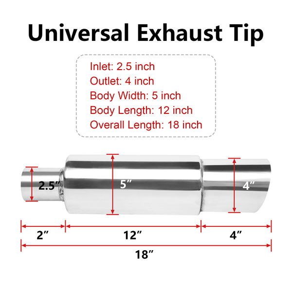 Exhaust Muffler,Stainless Steel Exhaust Burnt Tip,18”Length for Universal Fitment on Most Cars, Sedans, and Trucks(2.5” Inlet 4” Outlet)