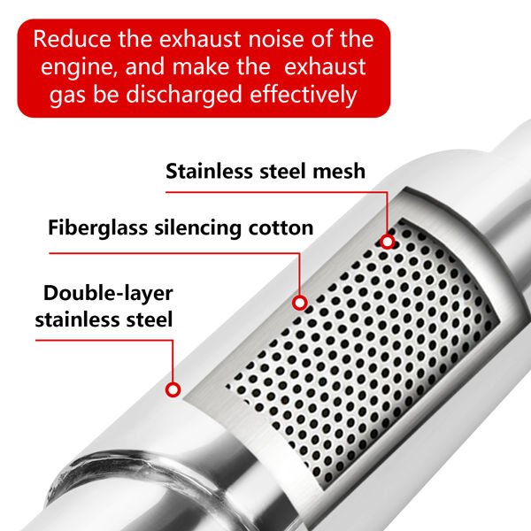FUNCTION – Straight-through muffler is densely packed with excellent, sound-absorbing cotton producing a low, deep tone while absorbing sound waves, and resonated muffler improves exhaust velocity performance.The exhaust tip can not only relieves back pressure to prevent the deformation of the car exhaust pipe, but also play the role of supercharging and turbulence.