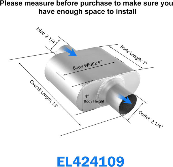 Universal Fitment- ELSHINE mufflers universally fit for all types of vehicles, such as cars, trucks and SUVs. Customizable design is offered in a variety of styles and sizes for universal fitment. Choose the right size and the muffler will be smoothly installed.Use exhaust clamps for connection or full MIG welding for maximum durability and stability. Enjoy the fun of refitting your car!