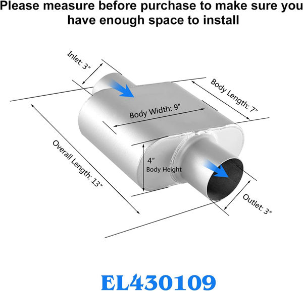 Universal Fitment- ELSHINE mufflers universally fit for all types of vehicles, such as cars, trucks and SUVs. Customizable design is offered in a variety of styles and sizes for universal fitment. Choose the right size and the muffler will be smoothly installed.Use exhaust clamps for connection or full MIG welding for maximum durability and stability. Enjoy the fun of refitting your car!