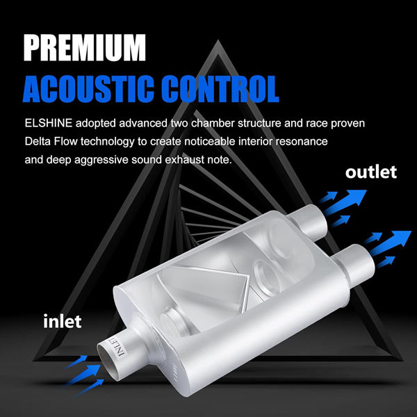 Universal Mufflers,Performance Automotive Exhaust Muffler 3 Chamber,3″ center in | 3″ dual out Overall: 23″