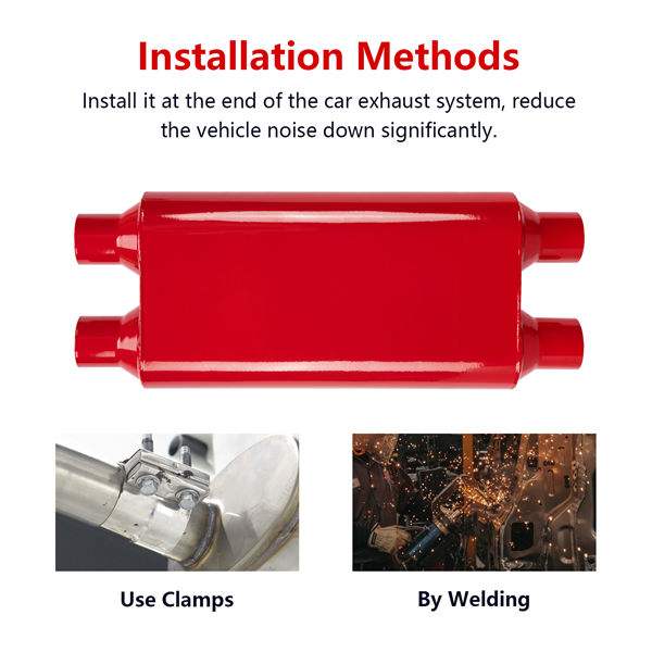 Adaptability-This dual in dual out muffler universal 2.5 inch muffler is fit on most vehicles, 3 chamber muffler only requires clamps or welding for installation.