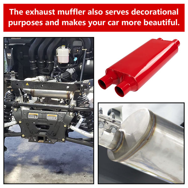 Adaptability-This dual in dual out muffler universal 2.25 inch muffler is fit on most vehicles, 3 chamber muffler only requires clamps or welding for installation.
