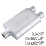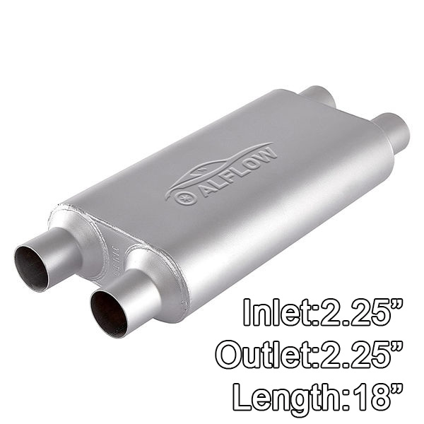 Universal Mufflers,Performance Automotive Exhaust Muffler,Dual Chamber,2.25″ dual in | 2.25″ dual out | overall 23″