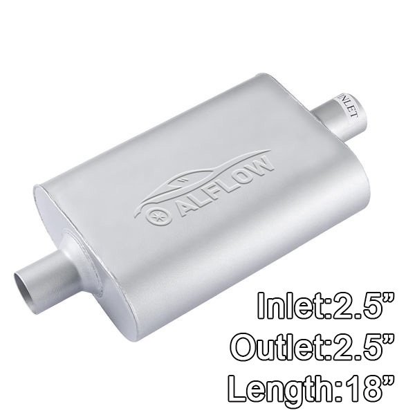 Universal Mufflers,Performance Automotive Exhaust Muffler,Dual Chamber,2.5″ center in | 2.5″ center out | Overall 18″