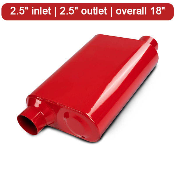 Universal Mufflers,Performance Automotive Exhaust Muffler,Dual Chamber,2.5″ offset in | 2.5″ offset out | Overall 18″