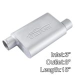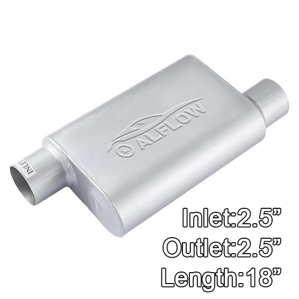 Universal Mufflers,Performance Automotive Exhaust Muffler,Dual Chamber,2.5″ offset in | 2.5″ offset out | Overall 18″