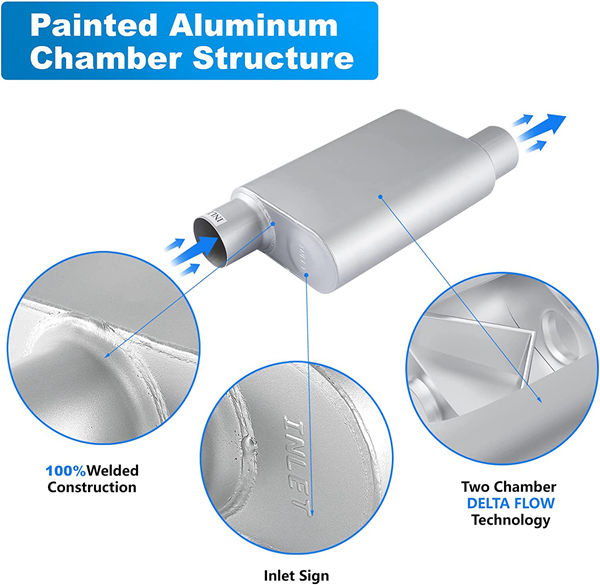 Adaptability-The universal muffler is fit on most vehicles, and only requires clamps or welding for installation.