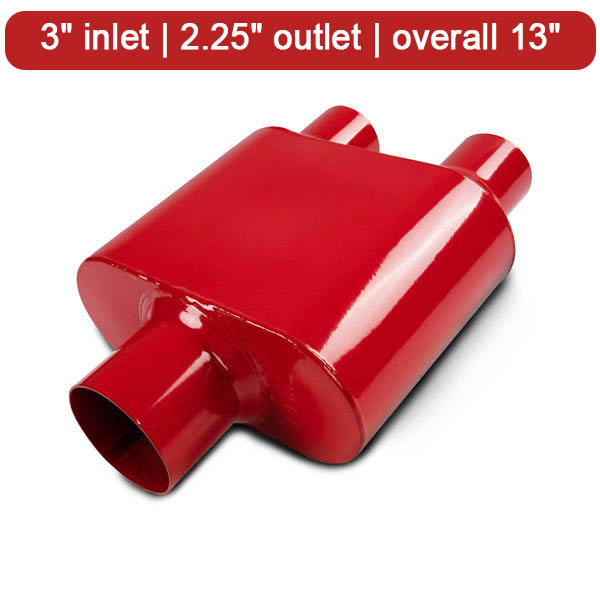 Universal Mufflers,Performance Automotive Exhaust Muffler,Single Chamber (3″ center in | 2.25″ dual out | Overall 13″)