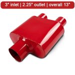 Performance Muffler size–3 inch inlet 3 inch outlet| Body Length: 7 inch | Overall Length: 13 inch | Body Height: 4 inch | Body Width: 9.5 inch | Inlet: 3 inch ID